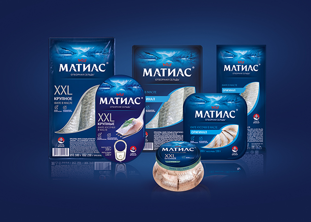 «МАТИАС XXL» – линейка продуктов с повышенными продуктовыми характеристиками. Для производства используется самое крупное и жирное филе сельди. Упаковка для продуктов линейки XXL тоже соответствующая – например, удобная стеклянная банка и крупный вакуумный лоток.