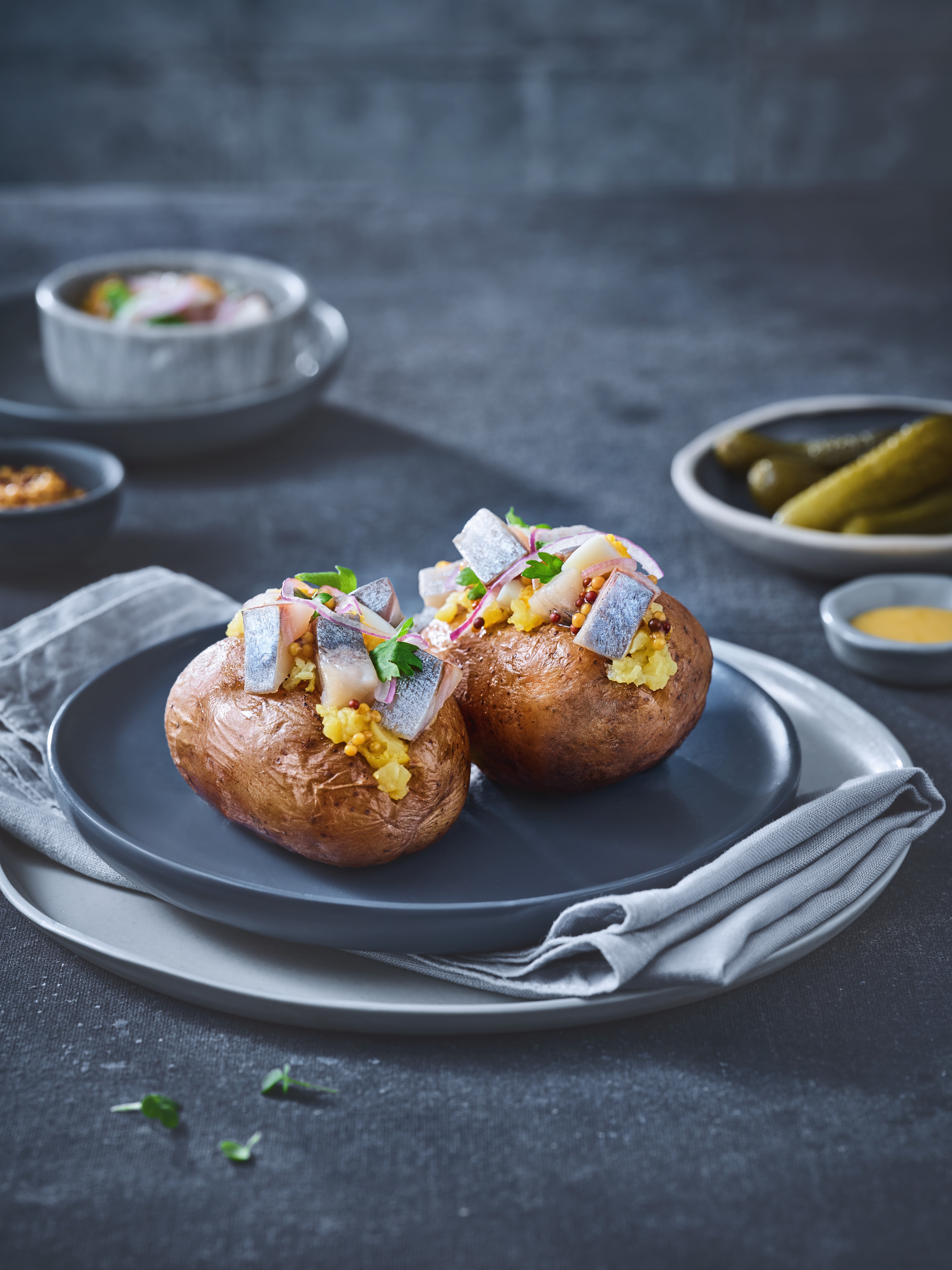 Запеченный картофель с салатом с сельдью