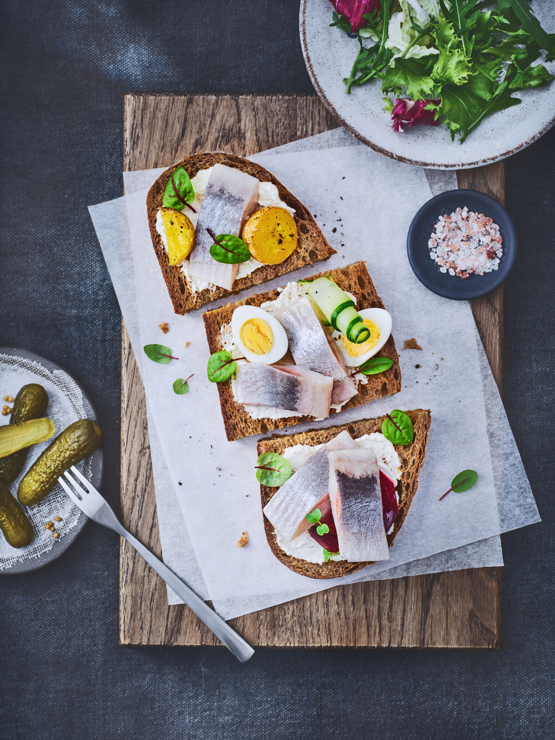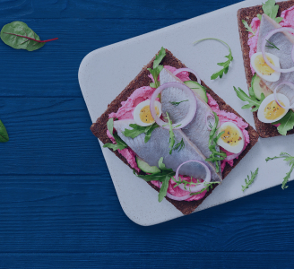 Сморреброд с сельдью и свекольным муссом