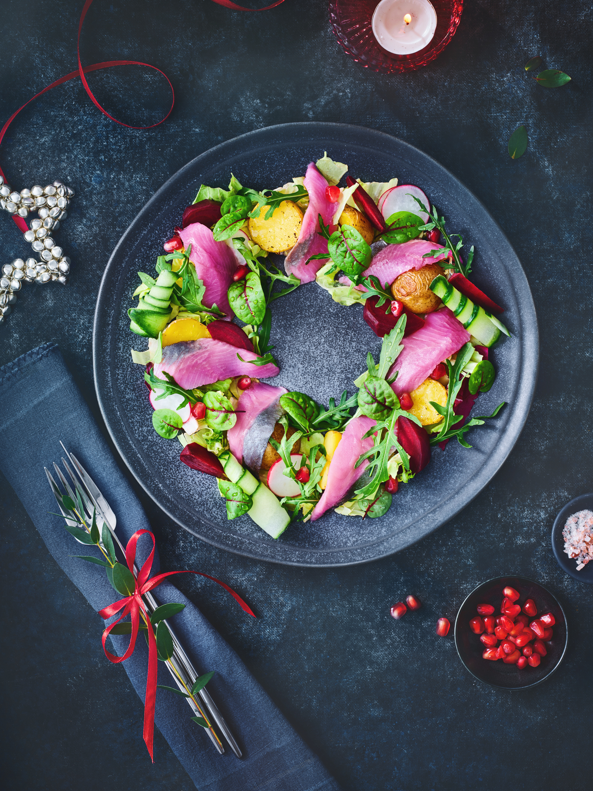 Салат с сельдью и малиновой заправкой